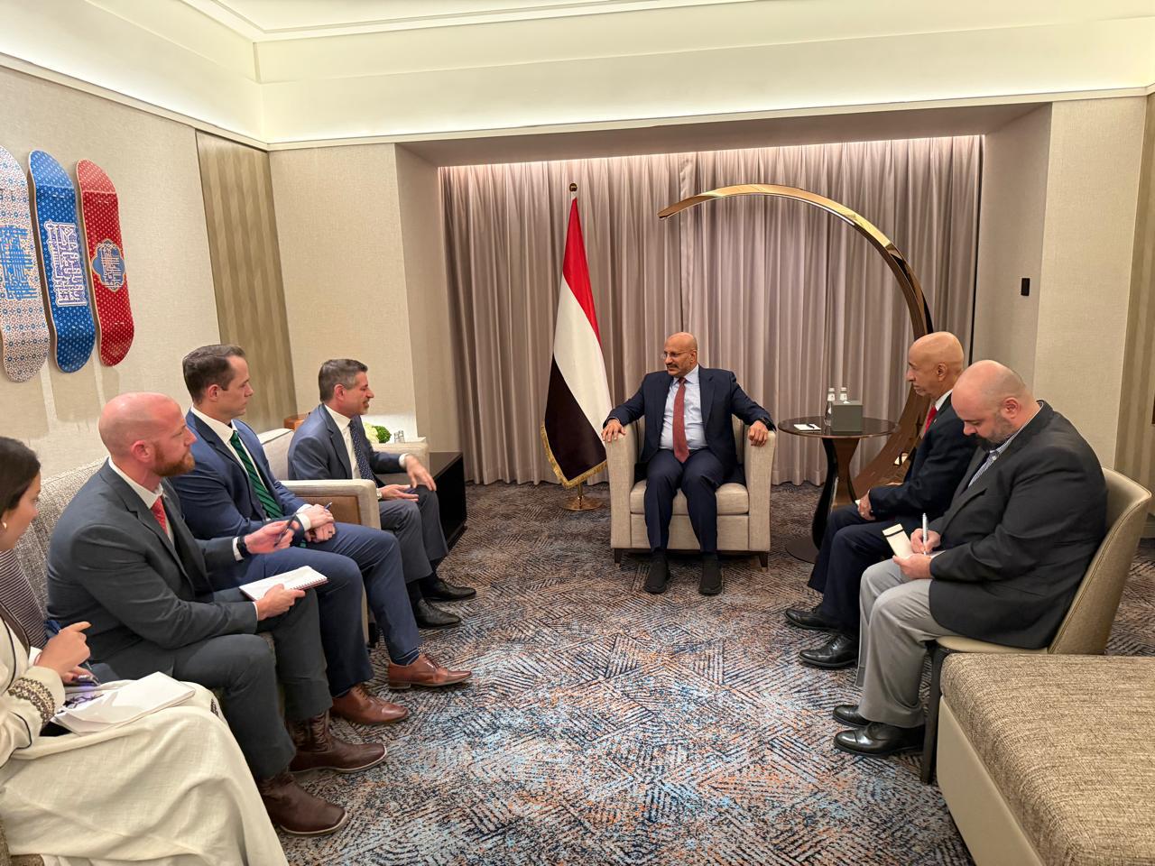 جرى خلال اللقاء مناقشة مستجدات الأوضاع في الساحتين اليمنية والاقليمية، وسبل تعزيز علاقات التعاوني الثنائي بين البلدين الصديقين، وكذا دعم الولايات المتحدة لمجلس القيادة الرئاسي والحكومة بما يدعم جهودهما في مواجهة التحديات السياسية والاقتصادية والأمنية.