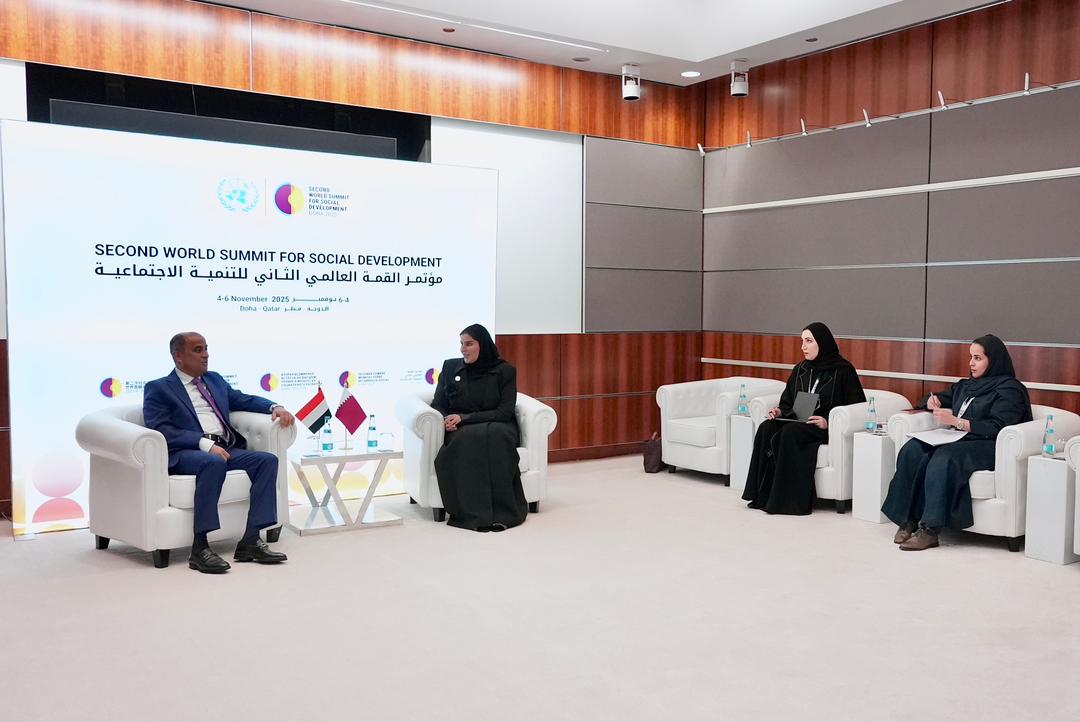التقى رئيس مجلس الوزراء، سالم صالح بن بريك، اليوم، وزيرة الدولة للتعاون الدولي نائبة رئيس مجلس إدارة صندوق قطر للتنمية، الدكتورة مريم بنت علي بن ناصر المسند، وذلك على هامش مشاركته في مؤتمر القمة العالمي الثاني للتنمية الاجتماعية، المنعقد حاليا في العاصمة القطرية الدوحة.