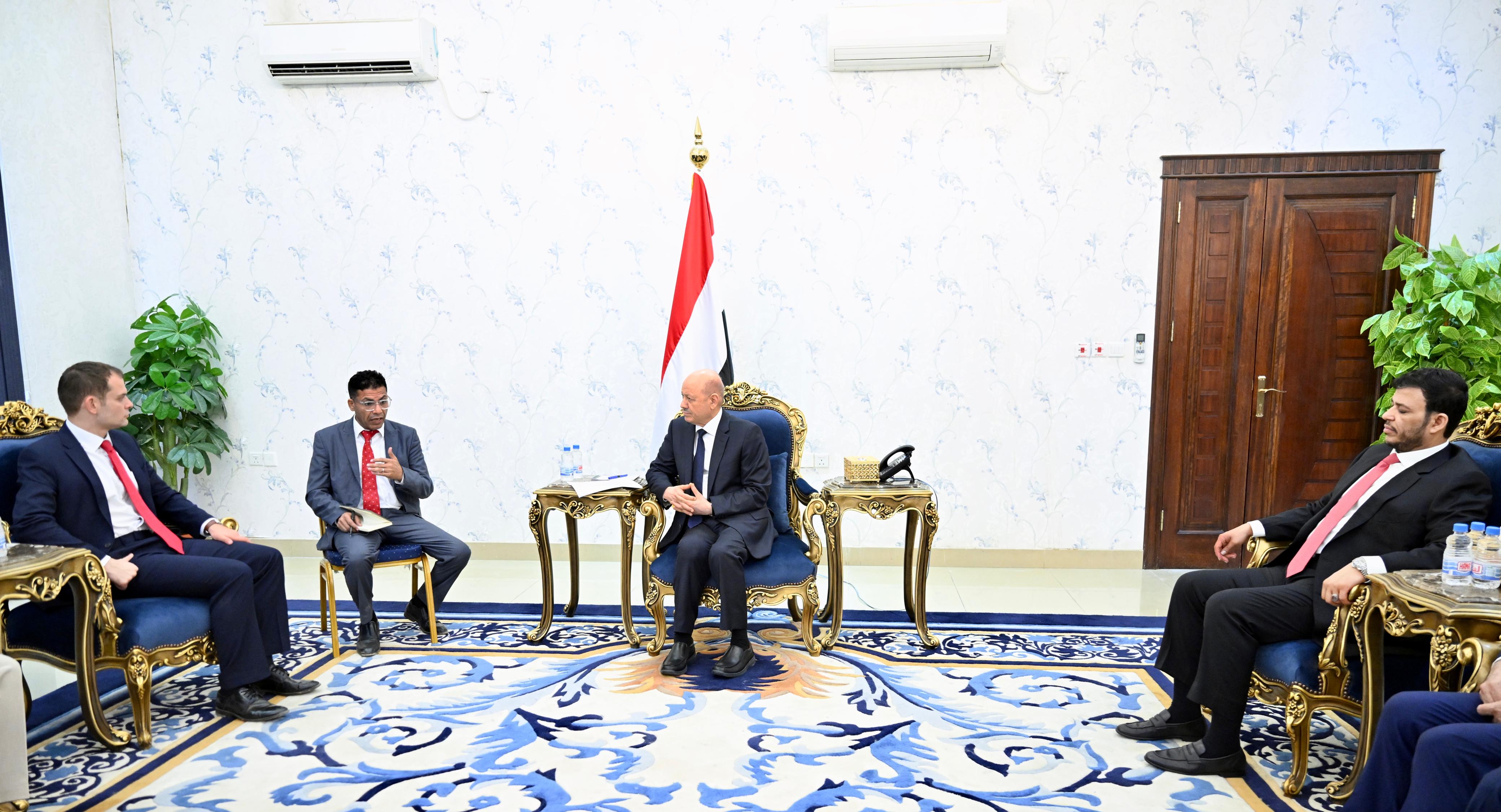 واكد فخامة الرئيس وحدة مجلس القيادة الرئاسي، حول اولويات المرحلة الانتقالية، وفي المقدمة انهاء التهديد الحوثي الارهابي، واستعادة مؤسسات الدولة، والشراكة الوثيقة مع المجتمع الدولي في حماية السلم والامن العالميين.