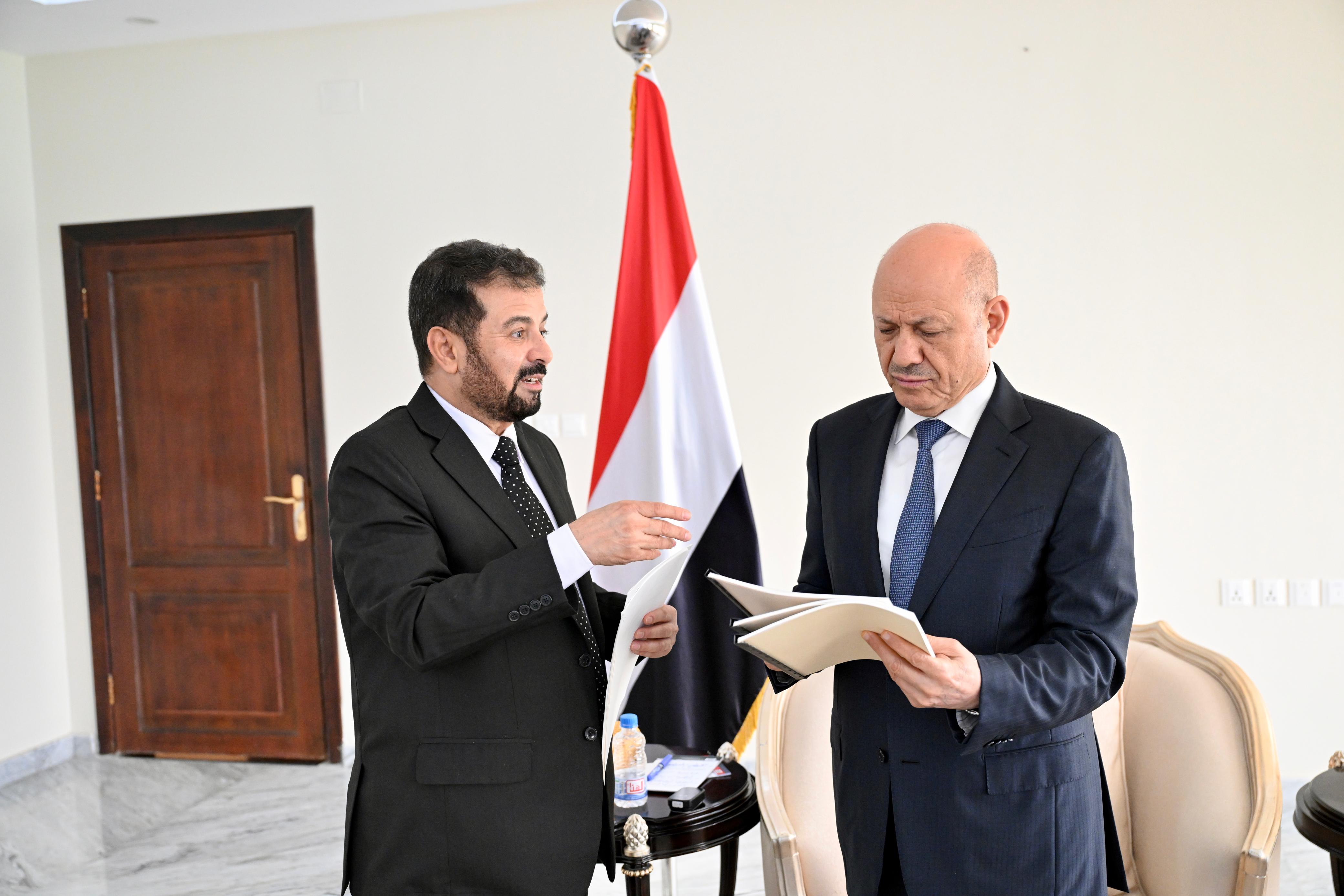 التقى فخامة الرئيس الدكتور رشاد محمد العليمي، رئيس مجلس القيادة الرئاسي، اليوم الاربعاء رئيس الجهاز المركزي للرقابة والمحاسبة، القاضي أبوبكر حسين السقاف، الذي سلمه عددا من تقارير نتائج مراجعة اعمال المؤسسات، والمصالح الحكومية والقطاعات الانتاجية، اضافة الى رؤية الجهاز لتعزيز جهود الاصلاحات المالية والادارية والهيكلية، واجراءات الحوكمة، ومكافحة الفساد التي يقودها مجلس القيادة، والحكومة بدعم من المجتمعين الاقليمي والدولي.
