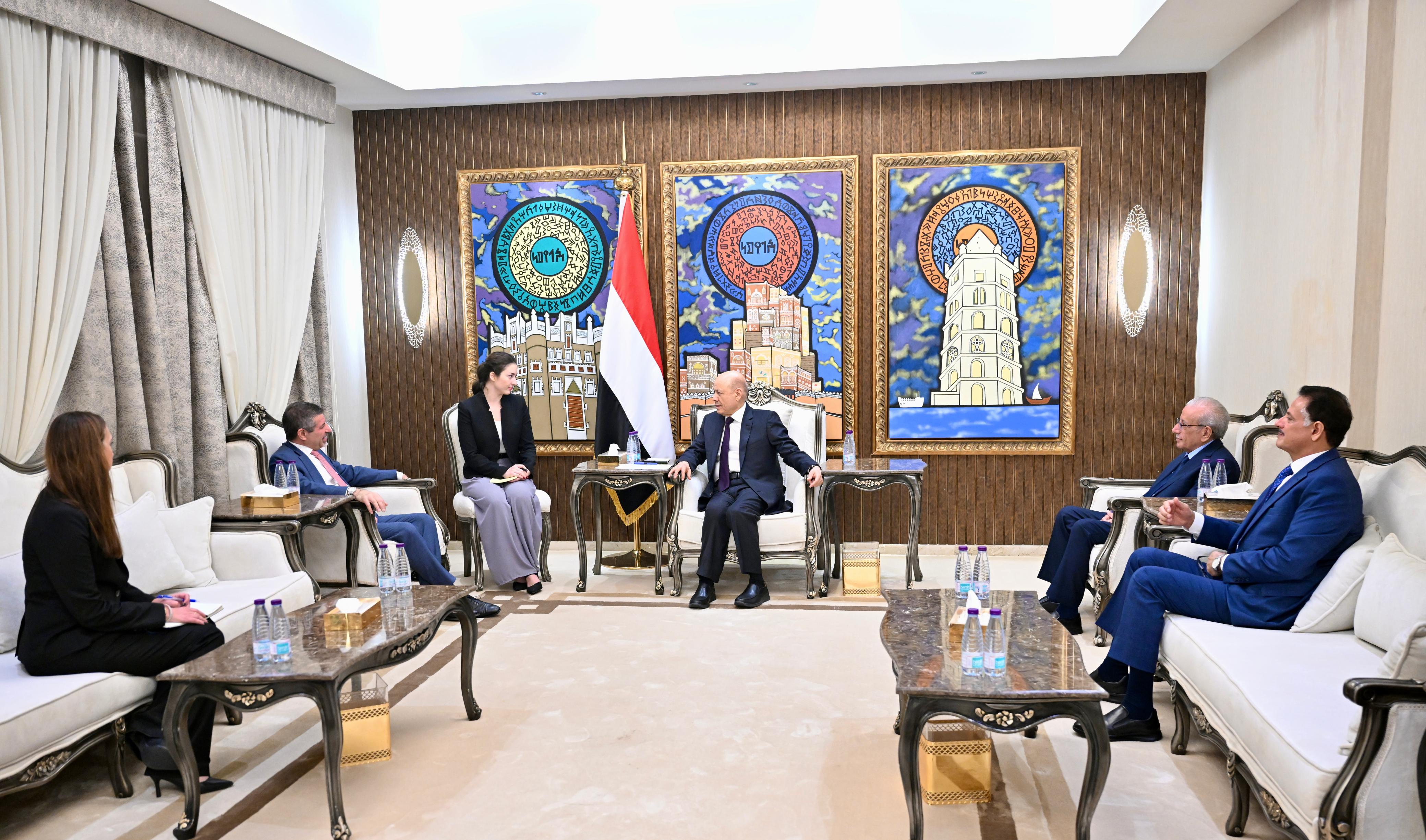 ونوه رئيس مجلس القيادة الرئاسي، بالتطور المشهود في العلاقات الثنائية بين البلدين الصديقين، معبراً عن تقديره واخوانه اعضاء المجلس، والحكومة للمواقف الأميركية الحازمة الى جانب الدولة اليمنية، بما في ذلك قرار الولايات المتحدة بتصنيف المليشيات الحوثية منظمة إرهابية اجنبية، والتصدي لشبكات تهريب السلاح والتمويل المرتبطة بالنظام الايراني، والدعم السياسي في مجلس الأمن، فضلا عن المساندة المقدرة لجهود الاصلاحات الاقتصادية.