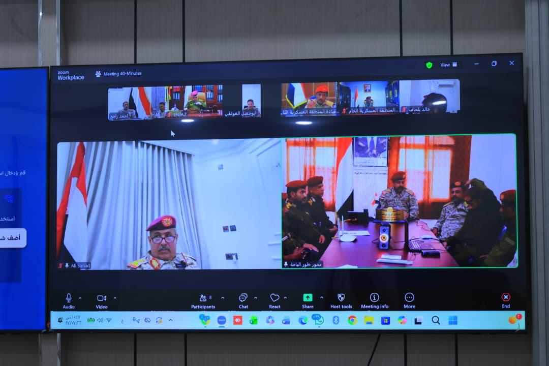 واستمع إلى احاطات حول الوضع الميداني، والجاهزية القتالية، وتقييم مستوى تنفيذ المهام، وإعداد الخطط التدريبية والعملياتية والمعنوية للعام الجديد، وإايجازات من قادة المناطق، عن الوضع الميداني في مسارح عمليات المناطق العسكرية الثانية، والثالثة، والخامسة، والسادسة، والسابعة، والثامنة وفي محاورالغيضة وتعز وطور الباحة وأبين والضالع.
