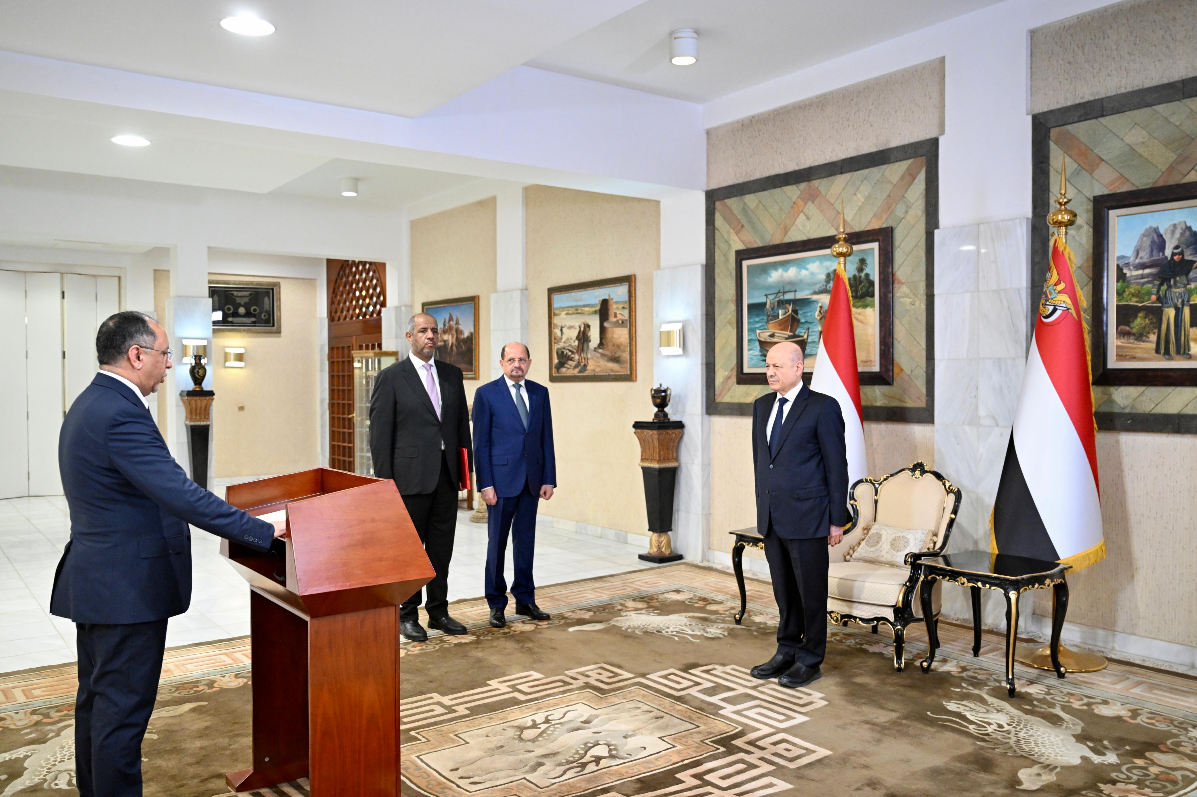 رئيس واعضاء الحكومة يؤدون اليمين الدستورية امام رئيس مجلس القيادة الرئاسي