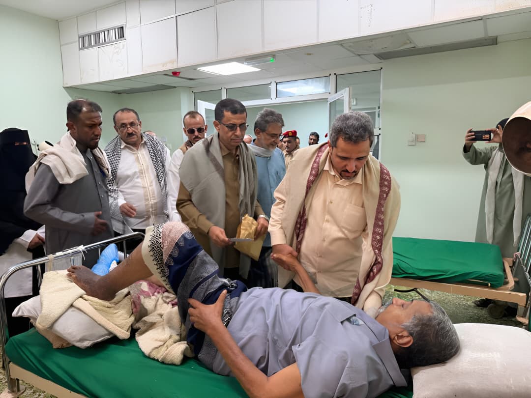 وتجوَّل في عدد من الأقسام..مطَّلعاً على أوضاع المرضى، ومطمئناً على حالتهم الصحية، وقدَّم لهم التهاني بمناسبة العيد، ومساعدات مالية..مؤكداً حرص قيادة السلطة المحلية، على دعم المستشفى والارتقاء بخدماته، والعمل على تلبية احتياجاته الأساسية، بما يعزِّز من قدرته على تقديم رعاية صحية أفضل، ويواكب تطلُّعات المواطنين في هذا القطاع الإنساني الحيوي.