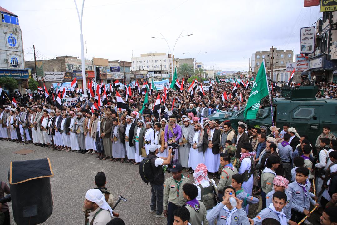 ورفع المشاركون لافتات وشعارات تعبّر عن وحدة الصف العربي ورفض التدخلات الإيرانية في شؤون المنطقة..محمّلين النظام الإيراني مسؤولية استمرار زعزعة الأمن والاستقرار، وتصعيد التوترات الإقليمية عبر أذرعه المسلحة، وفي مقدمتها ميليشيات الحوثي الإرهابية.