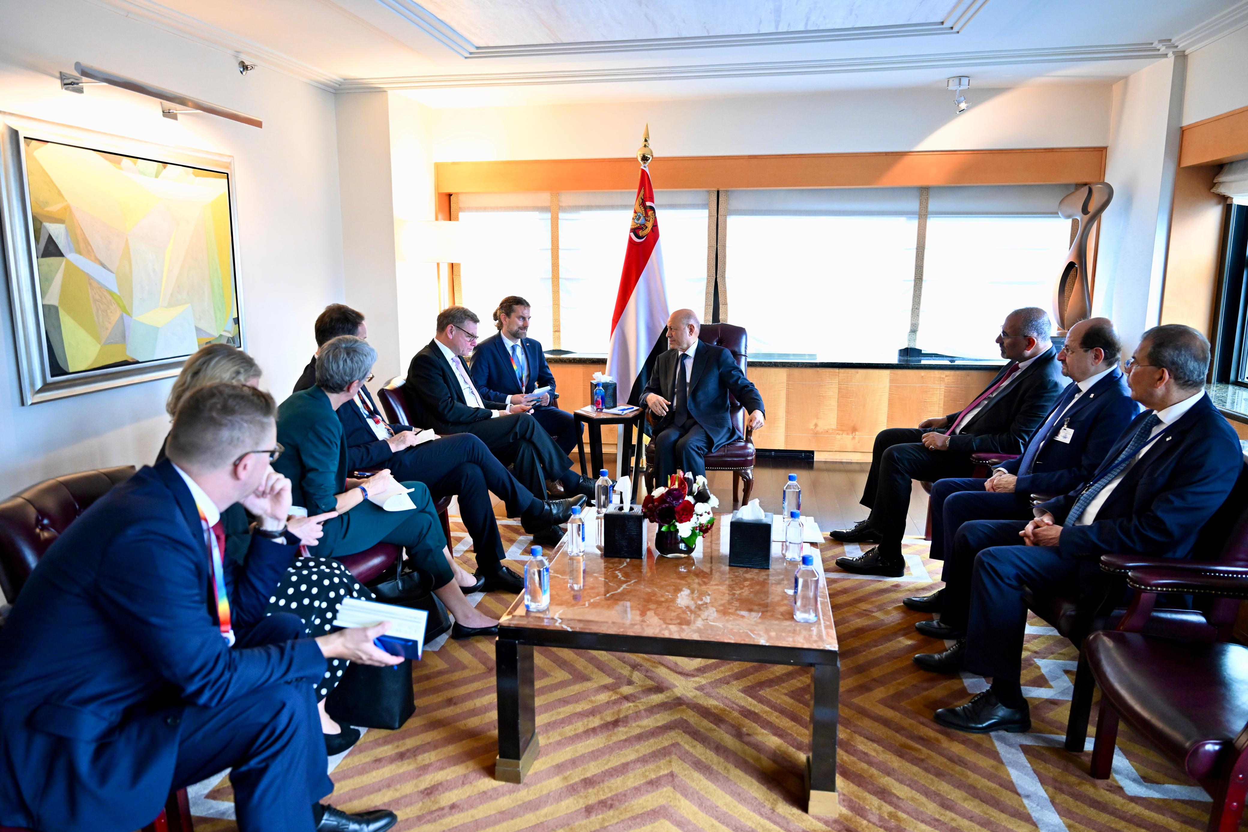 President al-Alimi praised the position of the Federal Republic of Germany alongside the Yemeni people and their political leadership, expressing his aspiration to double economic, development, and humanitarian interventions to improve the position of the national currency, living conditions, and basic services, and to complete comprehensive reform efforts.