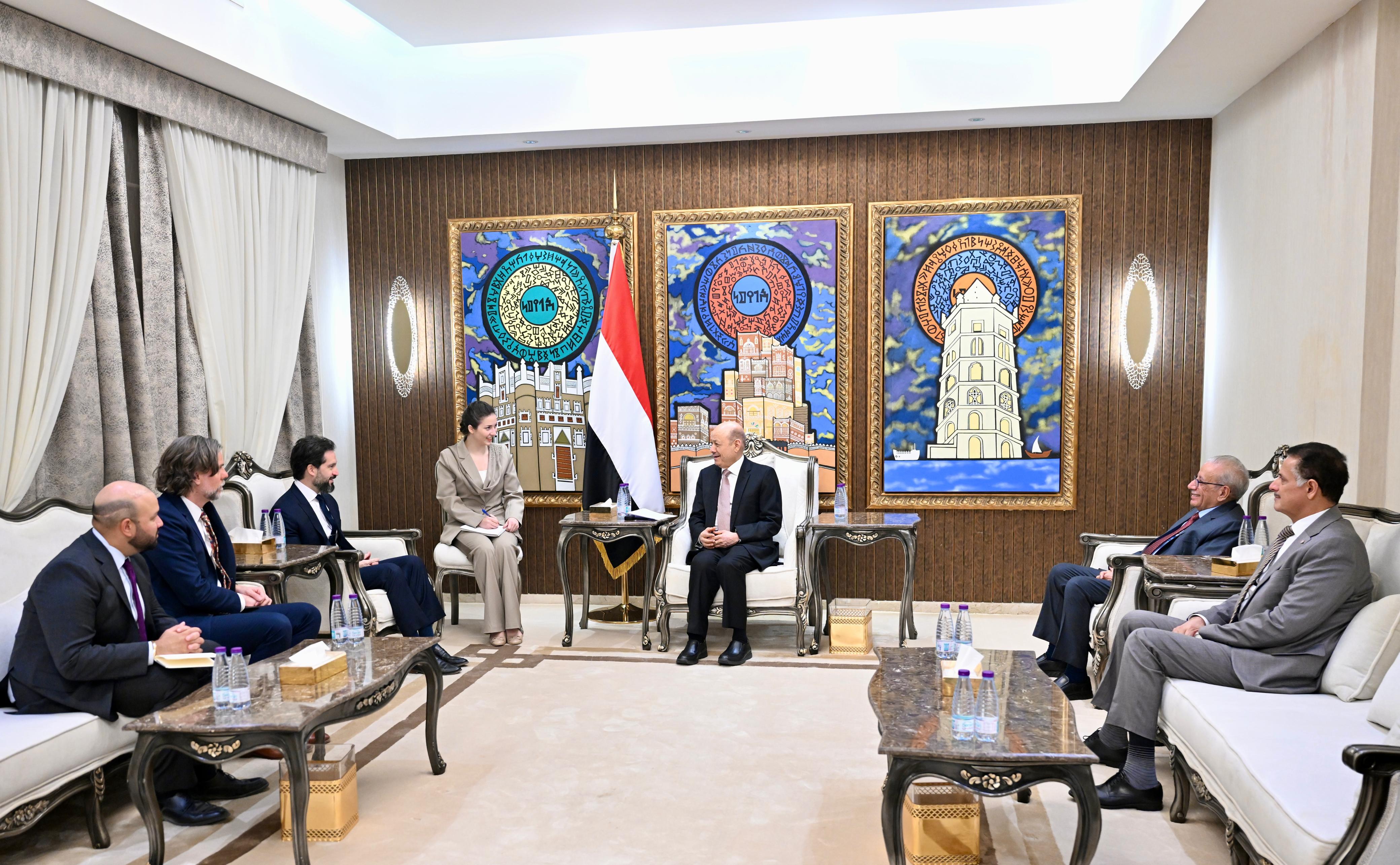 President al-Alimi confirmed urgent need to deter the Houthi militias' human rights violations, stop campaigns of arrest, torture, child recruitment, and mine planting, and immediately release United Nations employees and all detainees unconditionally.