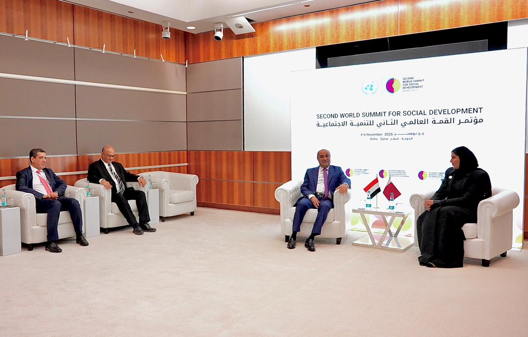 Prime Minister, Salem Saleh Bin Braik, met with Qatar's Minister of State for International Cooperation, Dr. Mariam bin Ali bin Nasser Al-Misnad, on the sidelines of the 2nd World Summit on Social Development.