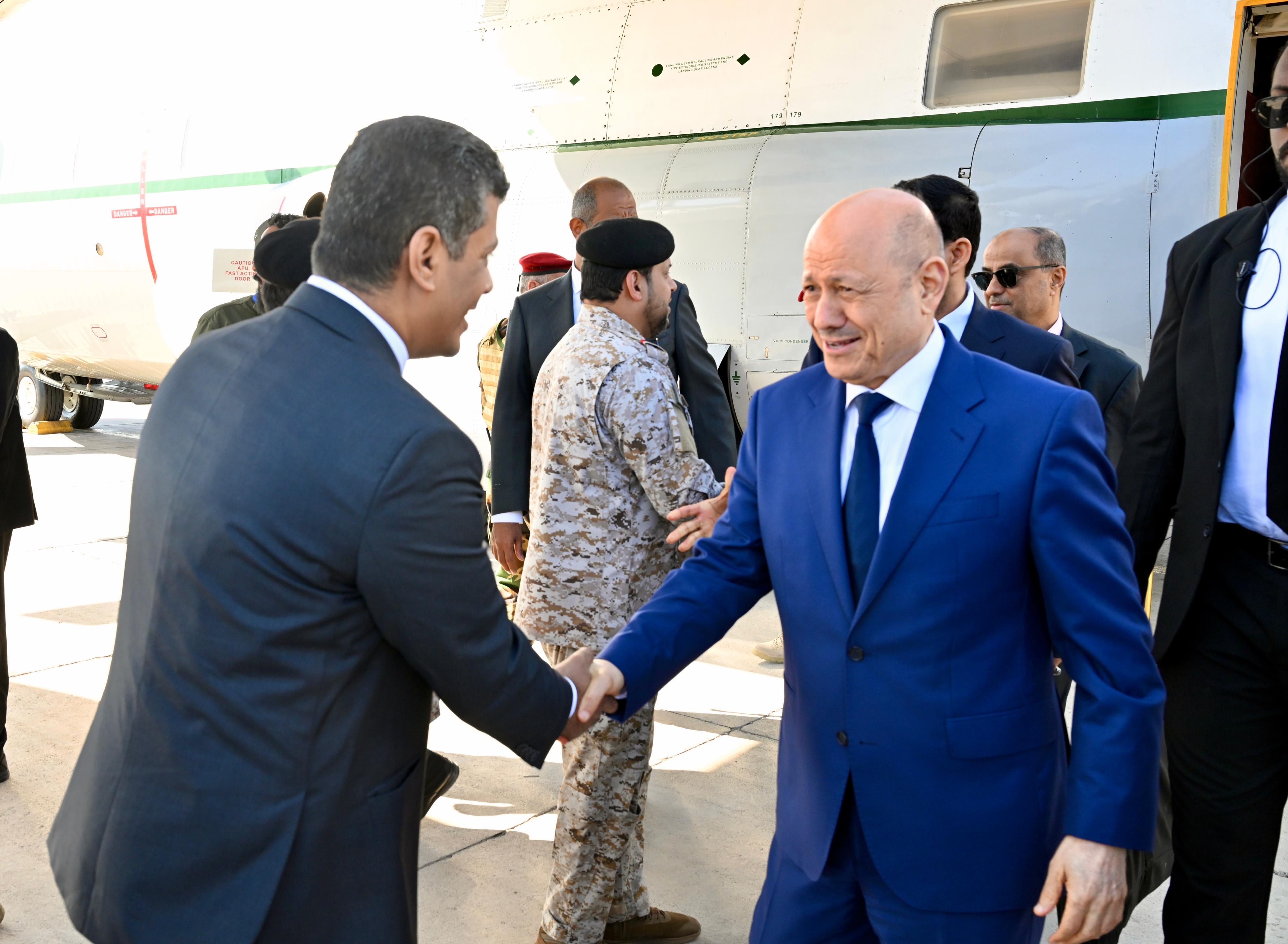 His Excellency President Dr. Rashad al-Alimi, the Chairman of the Presidential Leadership Council, accompanied by Council member Dr. Abdullah al-Alimi, returned to the temporary capital, Aden, along with Prime Minister Salem Saleh bin Buraik and Central Bank Governor Ahmed Ghaleb.
