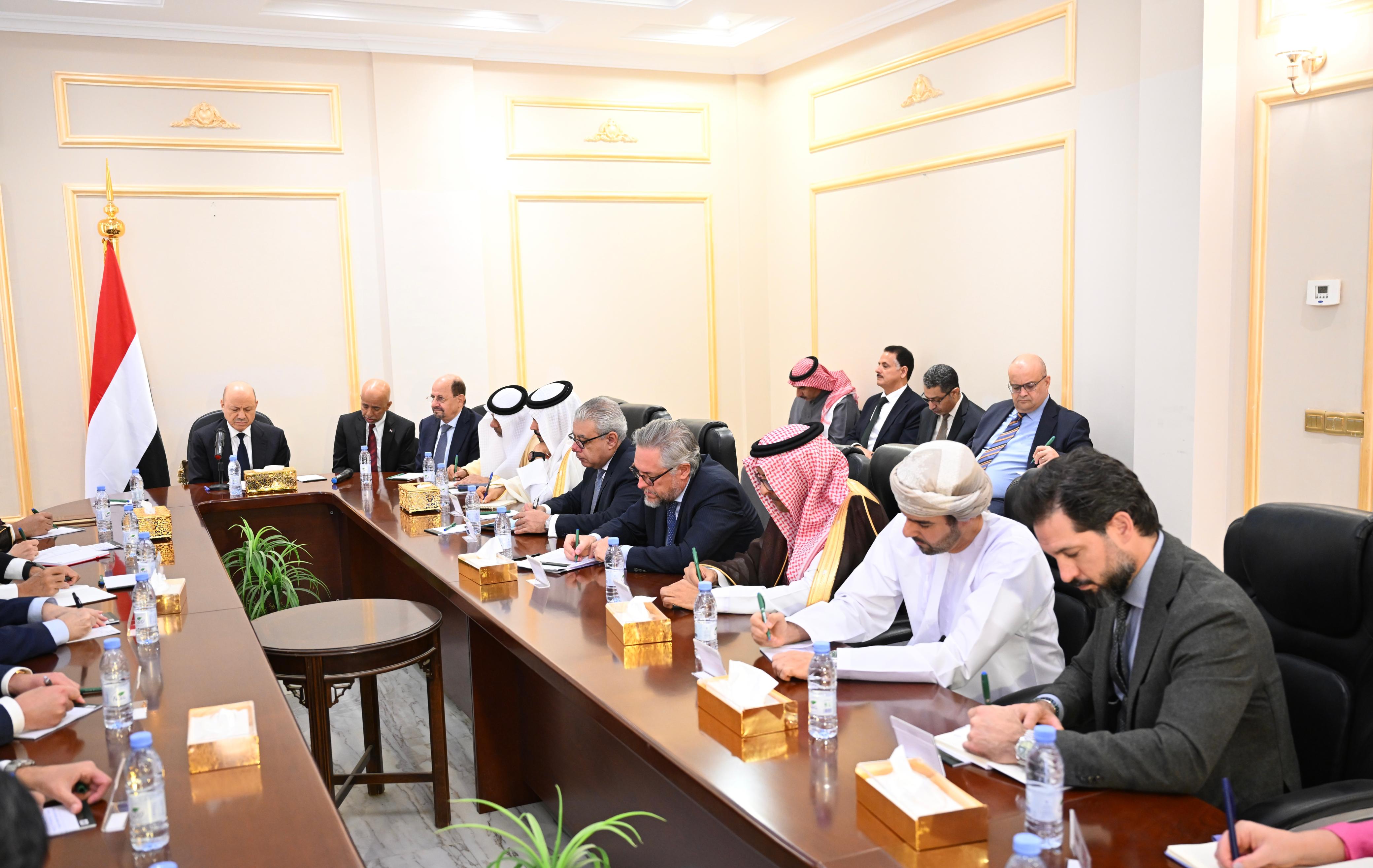 His Excellency President Dr. Rashad al-Alimi, Chairman of the Presidential Leadership Council (PLC), met today, Monday, with the Ambassadors of the countries sponsoring the political process in Yemen.