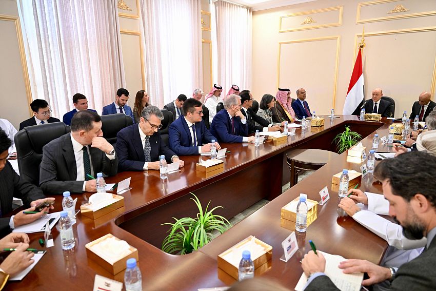 The Chairman of the PLC detailed the ambassadors on the recent developments in the eastern governorates, stating that the unilateral measures taken by the Southern Transitional Council (STC) constitute a blatant violation of the transitional phase references, a direct threat to the unity of security and military decision-making, an undermining of the legitimate government's authority and a serious threat to stability and the future of the entire political process.