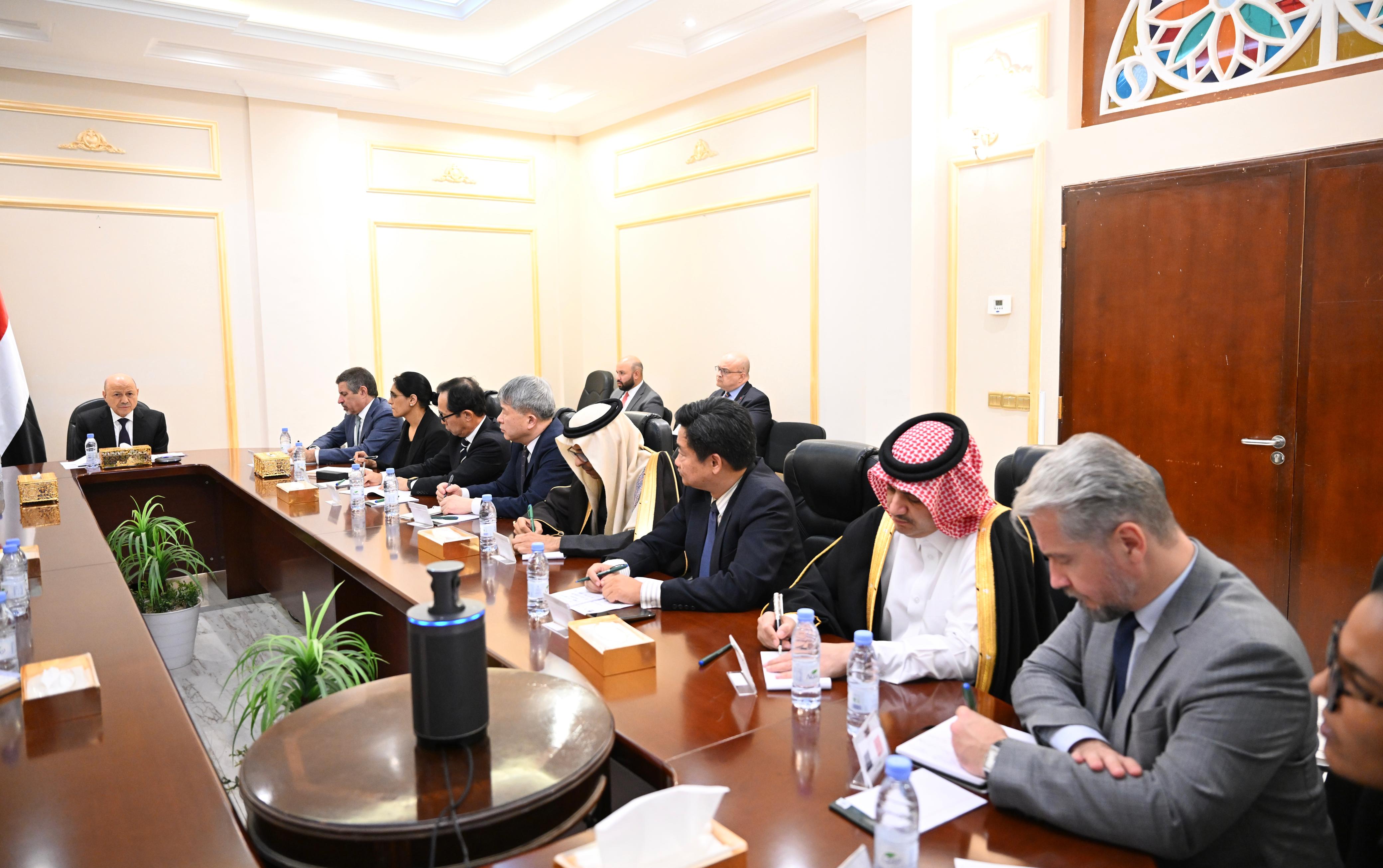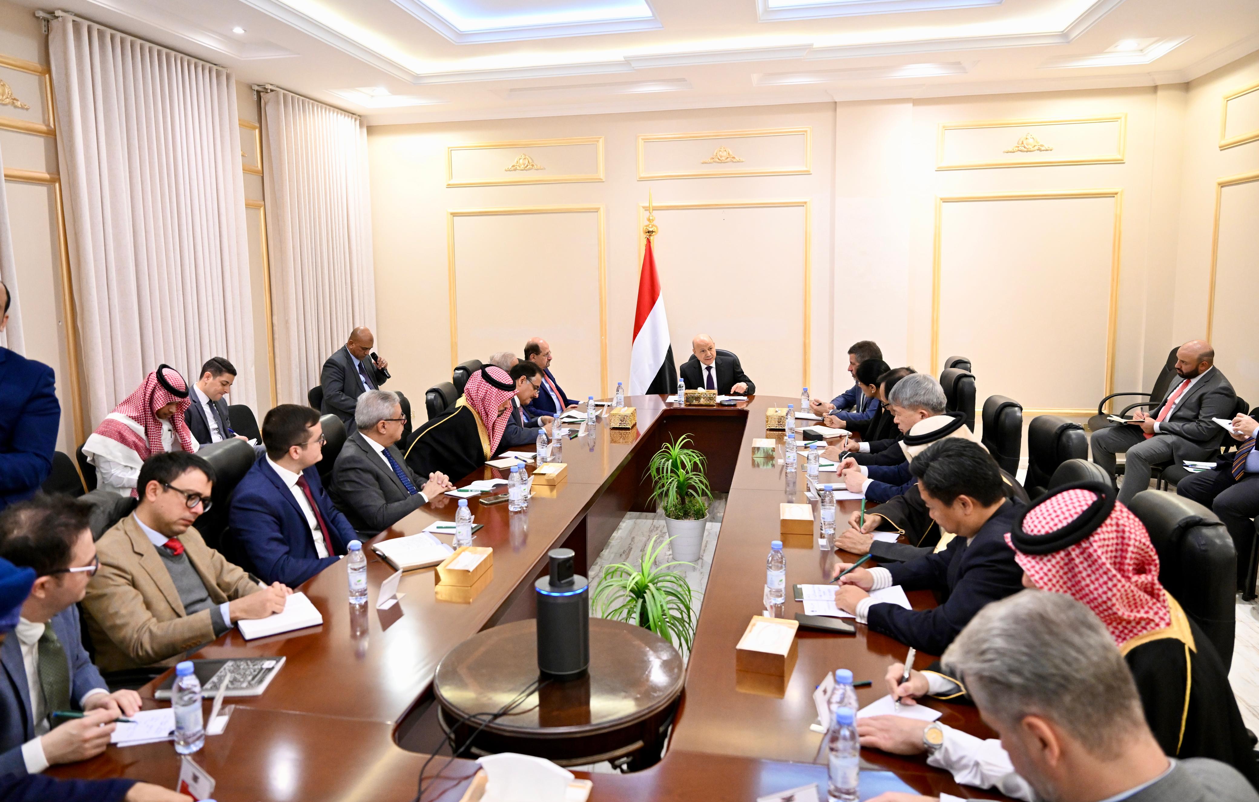 His Excellency President Dr. Rashad al-Alimi, Chairman of the Presidential Leadership Council (PLC) met today, Tuesday, with the Ambassadors of the countries sponsoring the political process in Yemen.