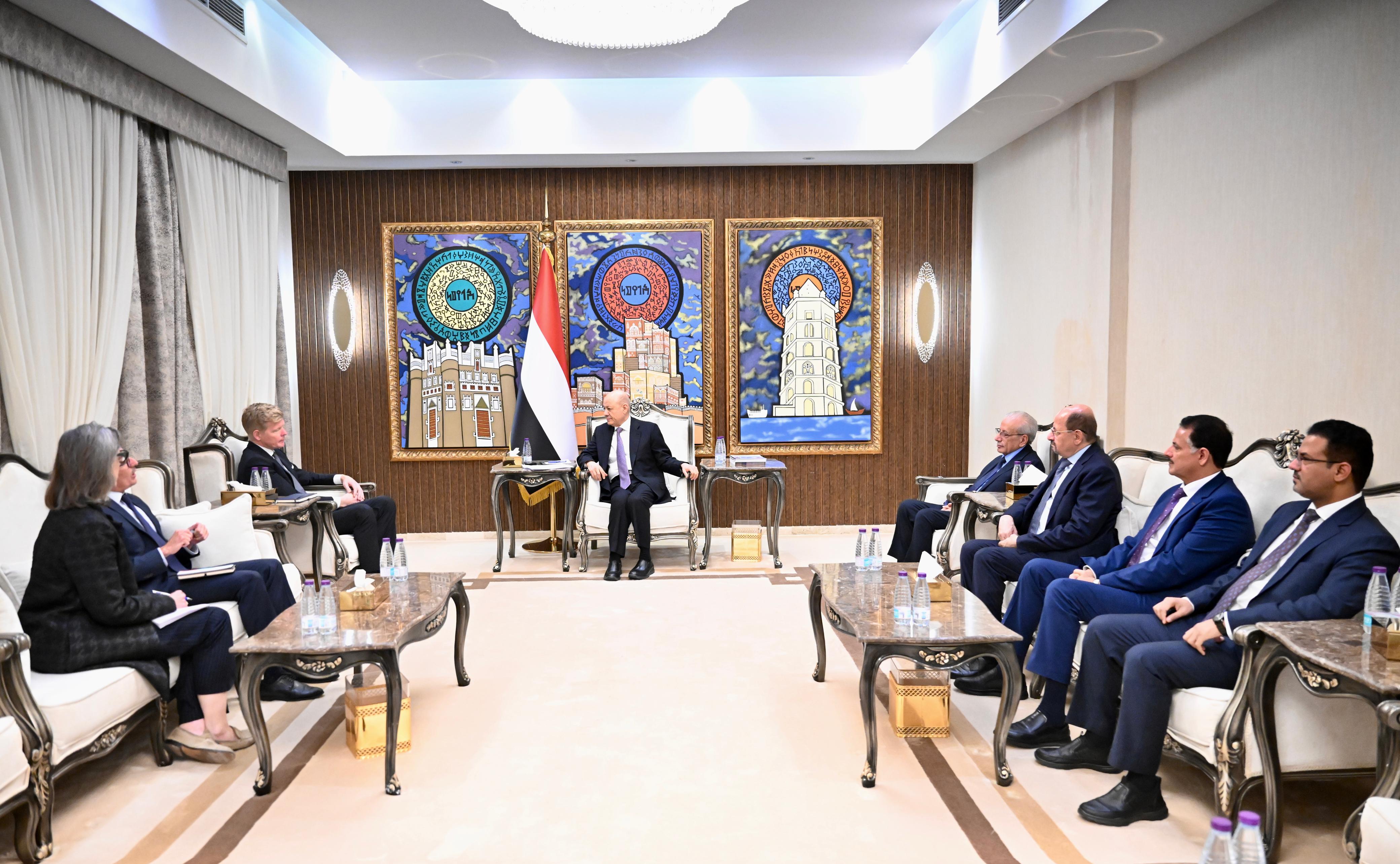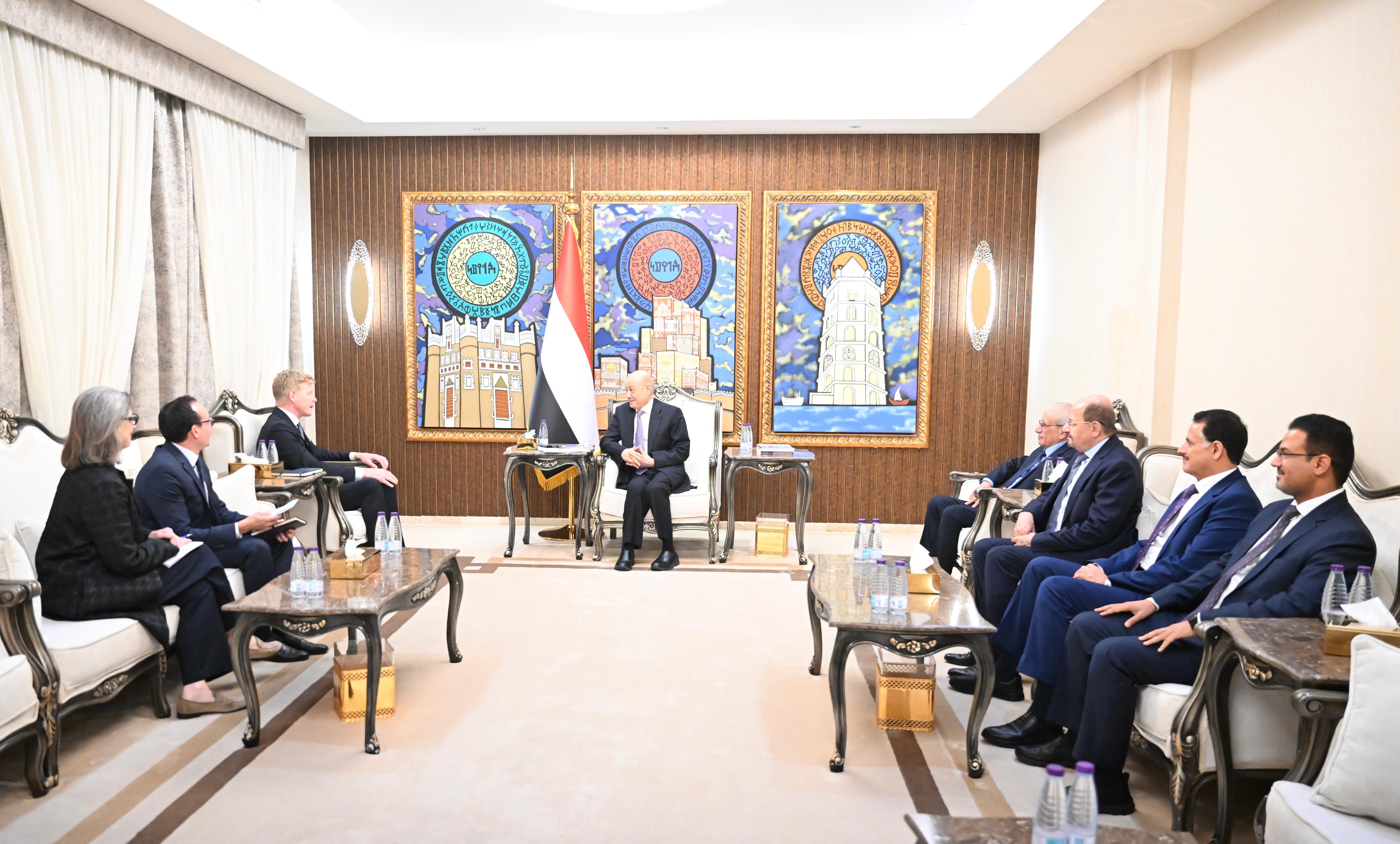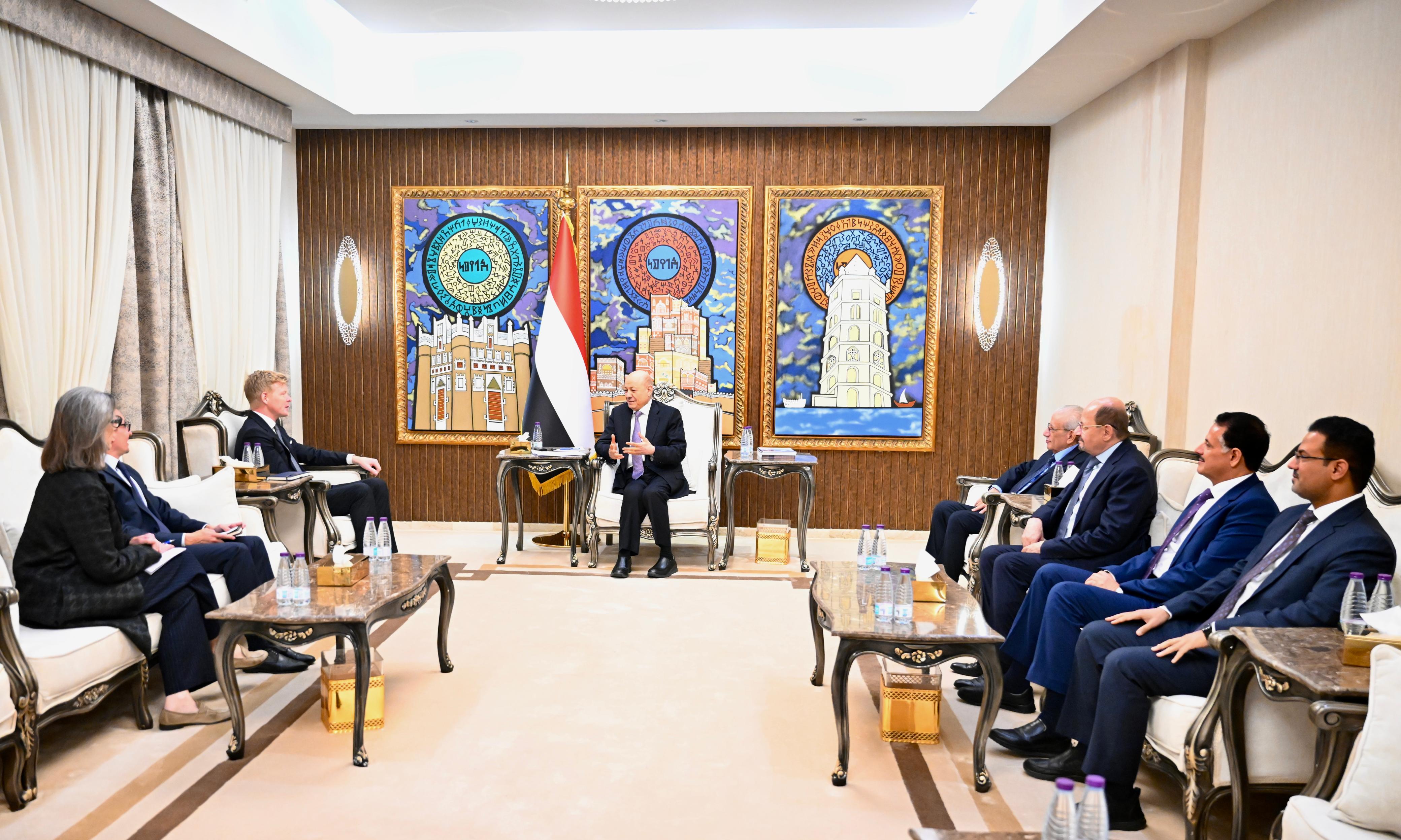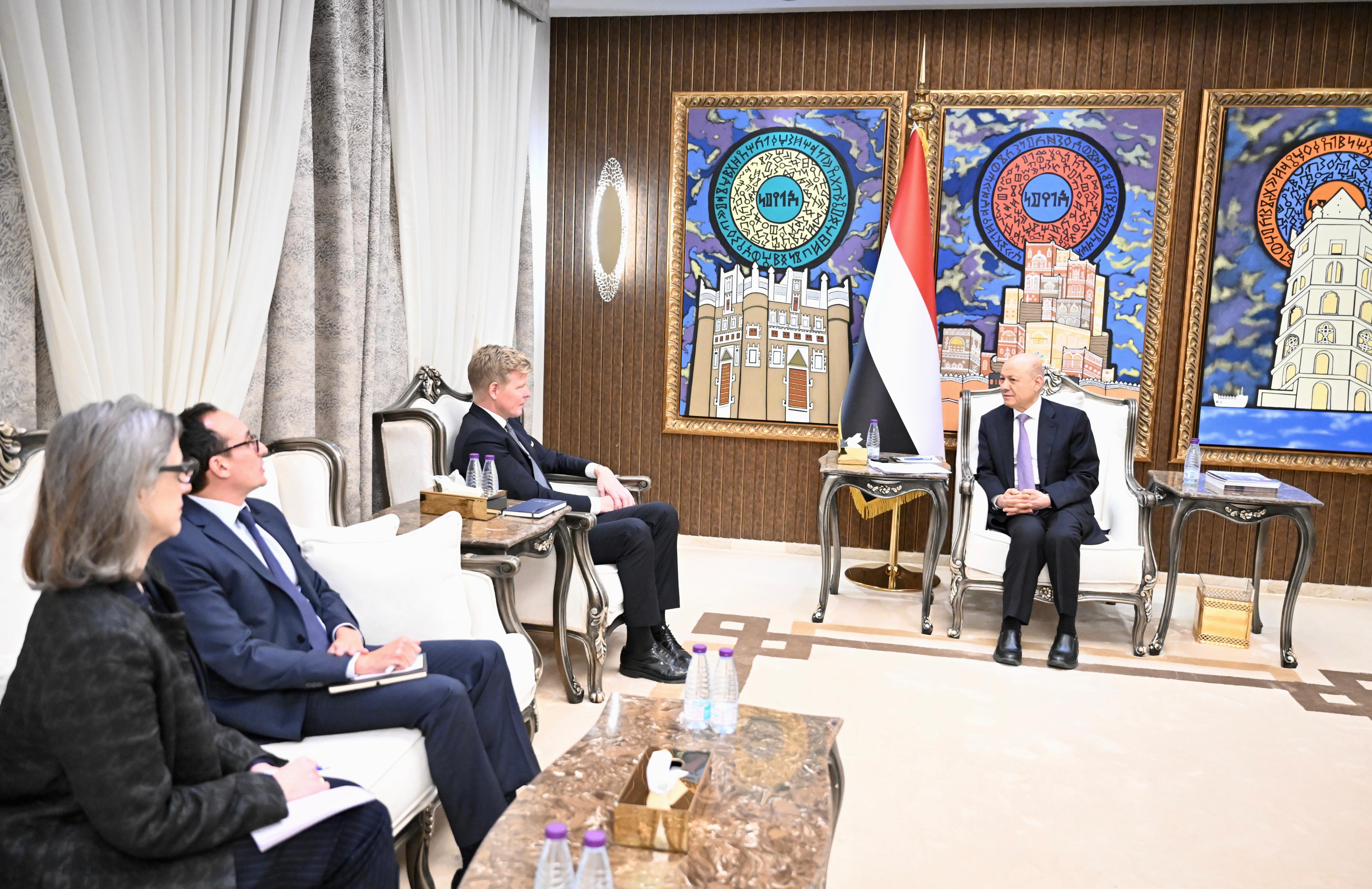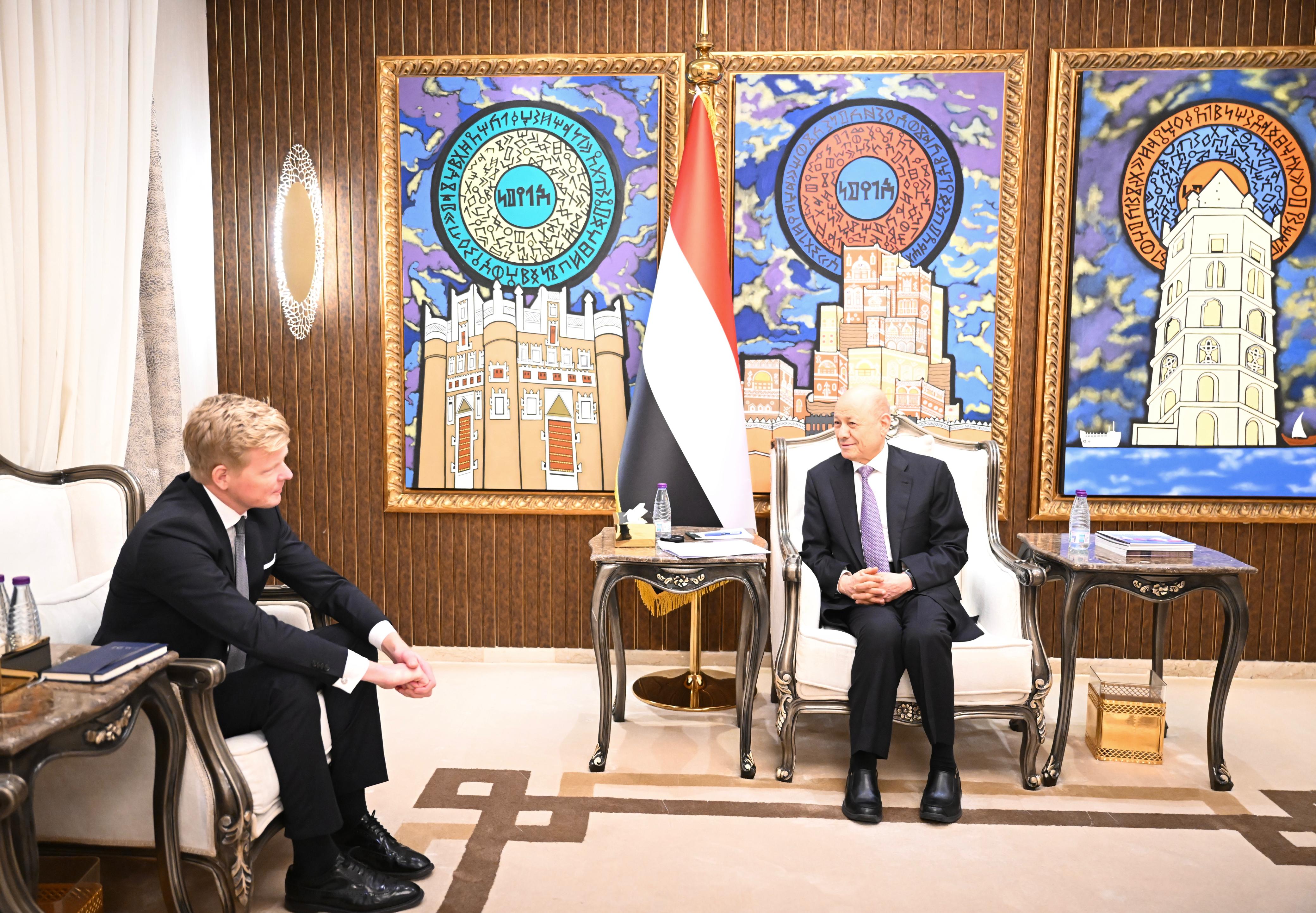 His Excellency President Dr. Rashad al-Alimi, Chairman of the Presidential Leadership Council (PLC) received today, Thursday, the United Nations (UN) Special Envoy to Yemen Hans Grundberg.