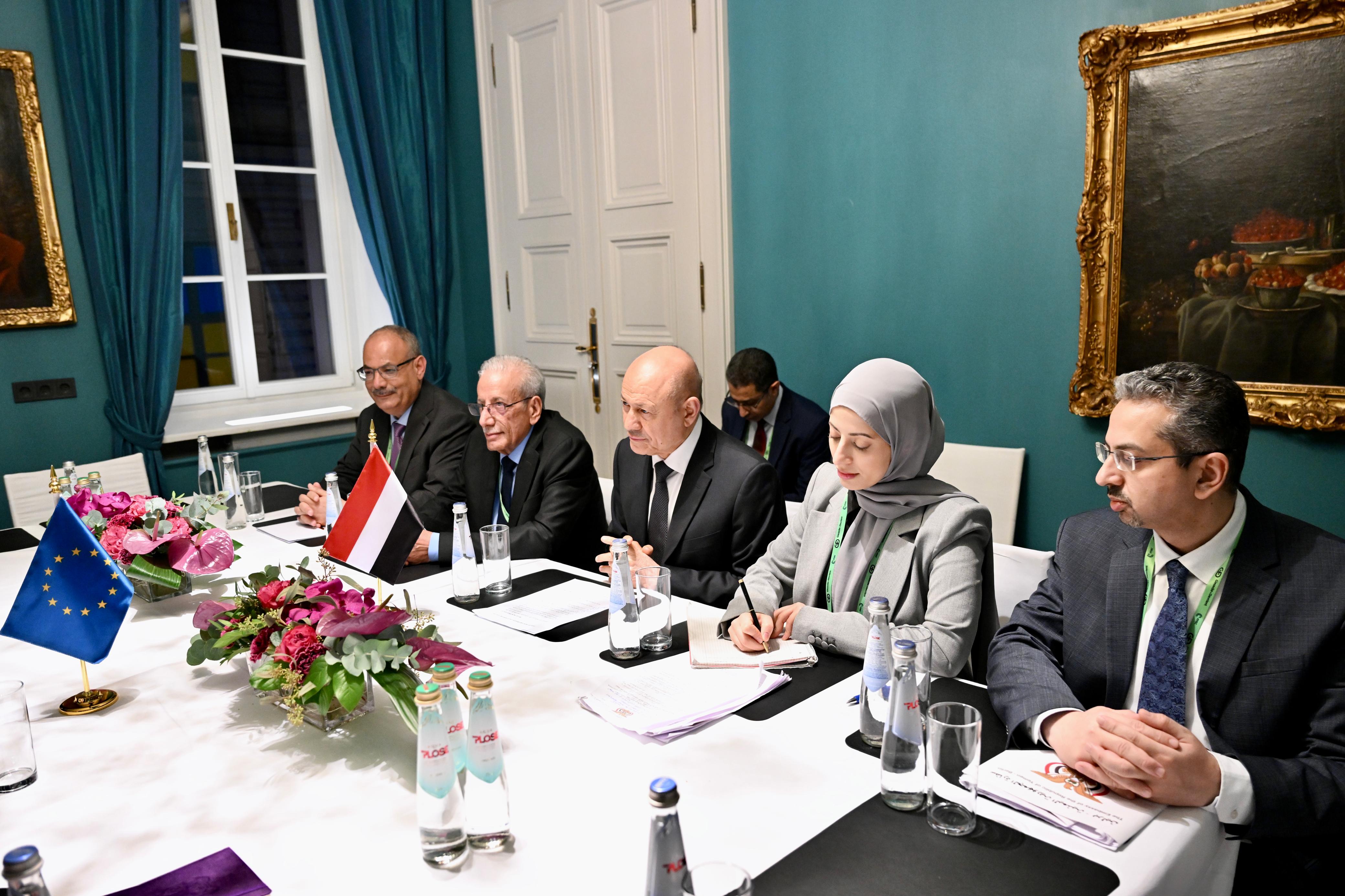 They conferred over bilateral cooperation and partnership relations, developments in the Yemeni national arena and the needed European support to sustain the government's efforts aimed at restoring recovery, sustaining basic services and deterring the terrorist threat.