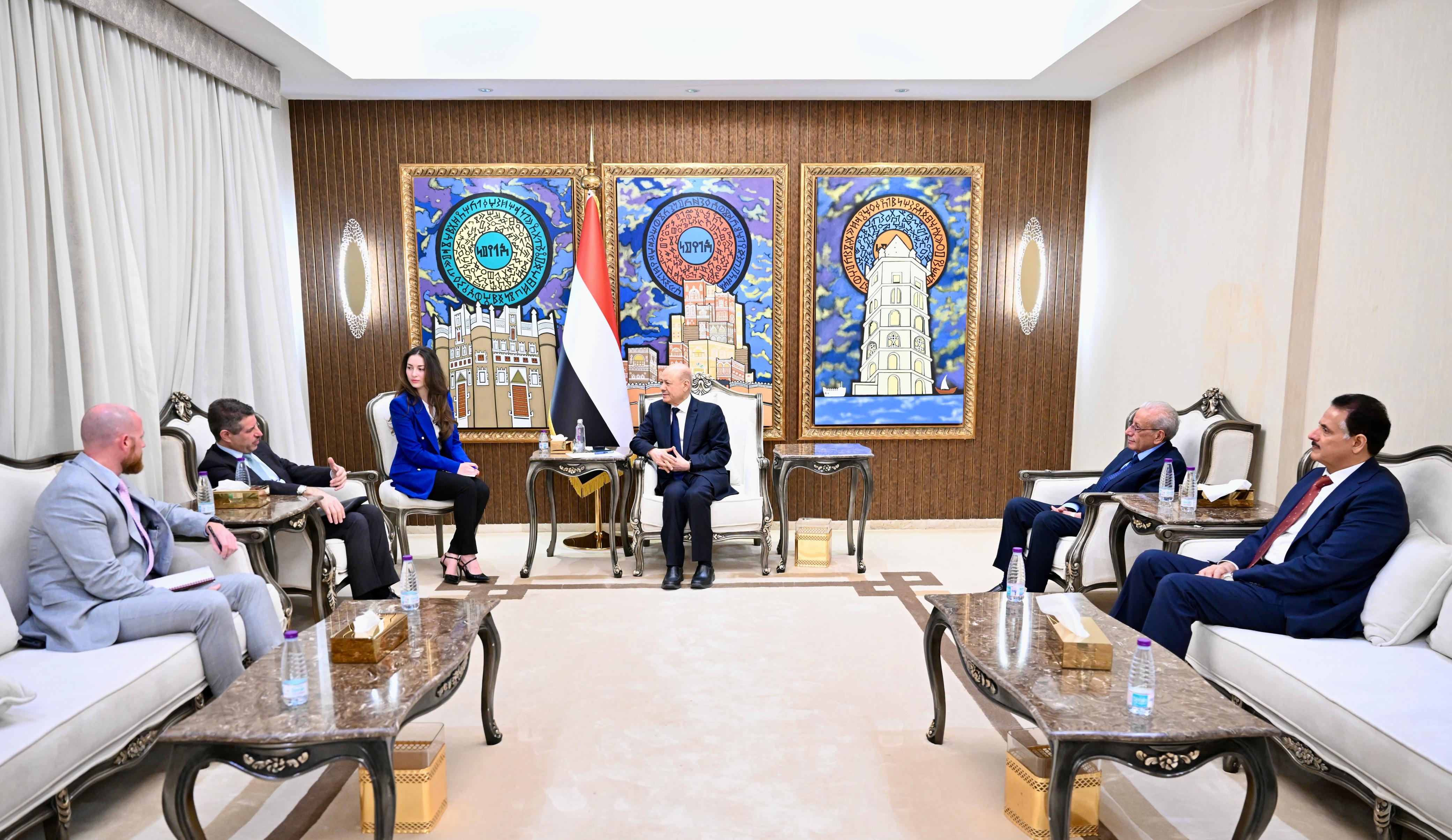 President al-Alimi celebrated the Yemeni-American robust relationship, highly appreciating the American constant support for the Yemeni people and its political leadership, particularly the decision about designating Houthi militias as a Foreign Terrorist Organization (FTO) and the subsequent measures against the financing and smuggling networks associated with them.